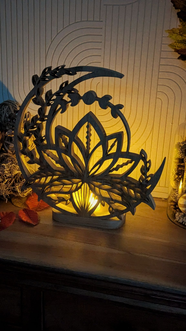 Utilisation : Socle avec rétro-éclairage LED à pile, effet scintillant pour imitation flamme de bougie